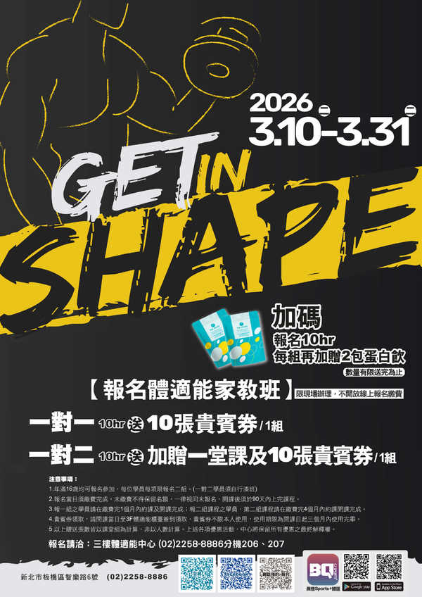 報名請洽:三樓體適能中心 (02)2258-8886分機206、207