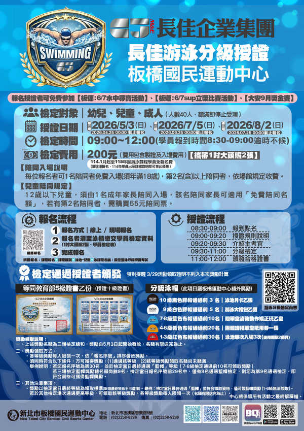【長佳游泳分級授證 】板橋國民運動中心